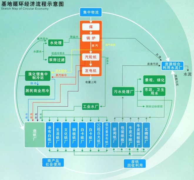 基地充分利用发电与造纸的相关性,以双水电厂为公用工程岛,实施横向资源整合,全面发展“七个集中”,“三个一体化”,大力推进循环经济。