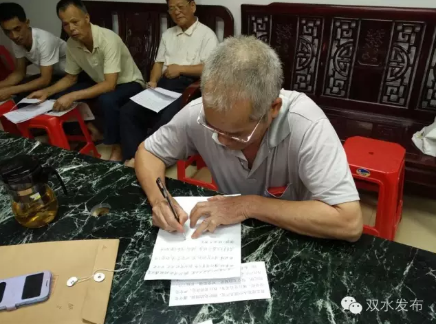 南水村全体党员干部在南水村党支部“两学一做”学习教育党员大会上重温入党誓词,每一名党员亲手抄写了一遍入党誓词,接受党性熏陶,进行思想洗礼和升华,全体党员深深感受到党员的责任、使命和荣耀。