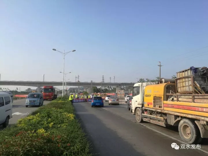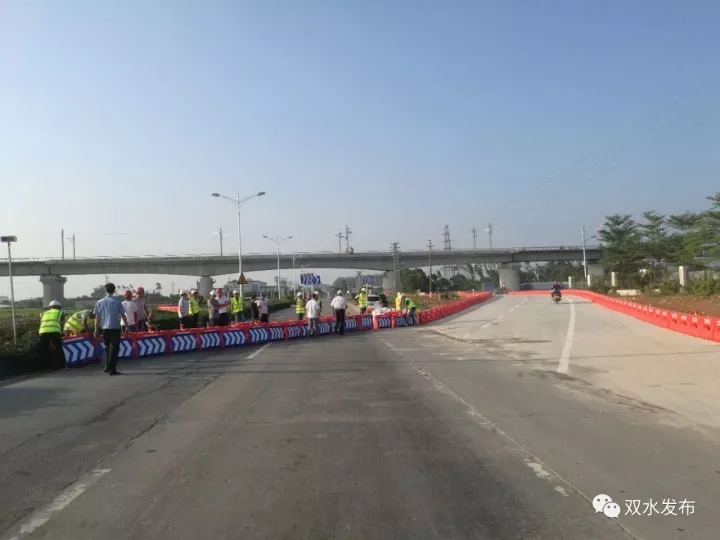 为配合江门大道西线下穿深茂铁路工程施工,江门大道西线施工单位对省道271双水镇南水红绿灯至广东华泰路口临时红绿灯段进行双向改道。