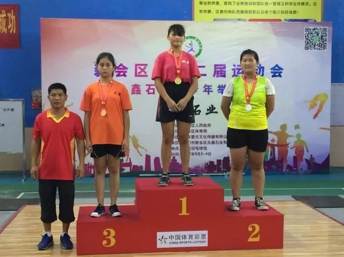女子丙组50公斤级的陈诚茵获得抓举金牌,挺举银牌,总成绩银牌;