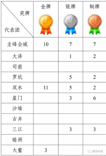 新会区第十二届运动会奖牌榜(8月2日)