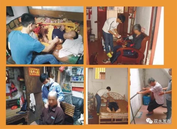 目前,我镇通过购买服务,由双水镇中心卫生院的医生每周上门2次,为我镇112户服务对象进行康复及身体检查。