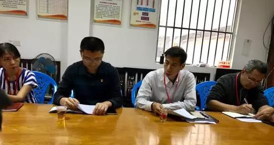 镇人大主席黎伟男同志在富美村委会向第五小组的人大代表传达十九大精神,镇长吴志斌出席座谈会